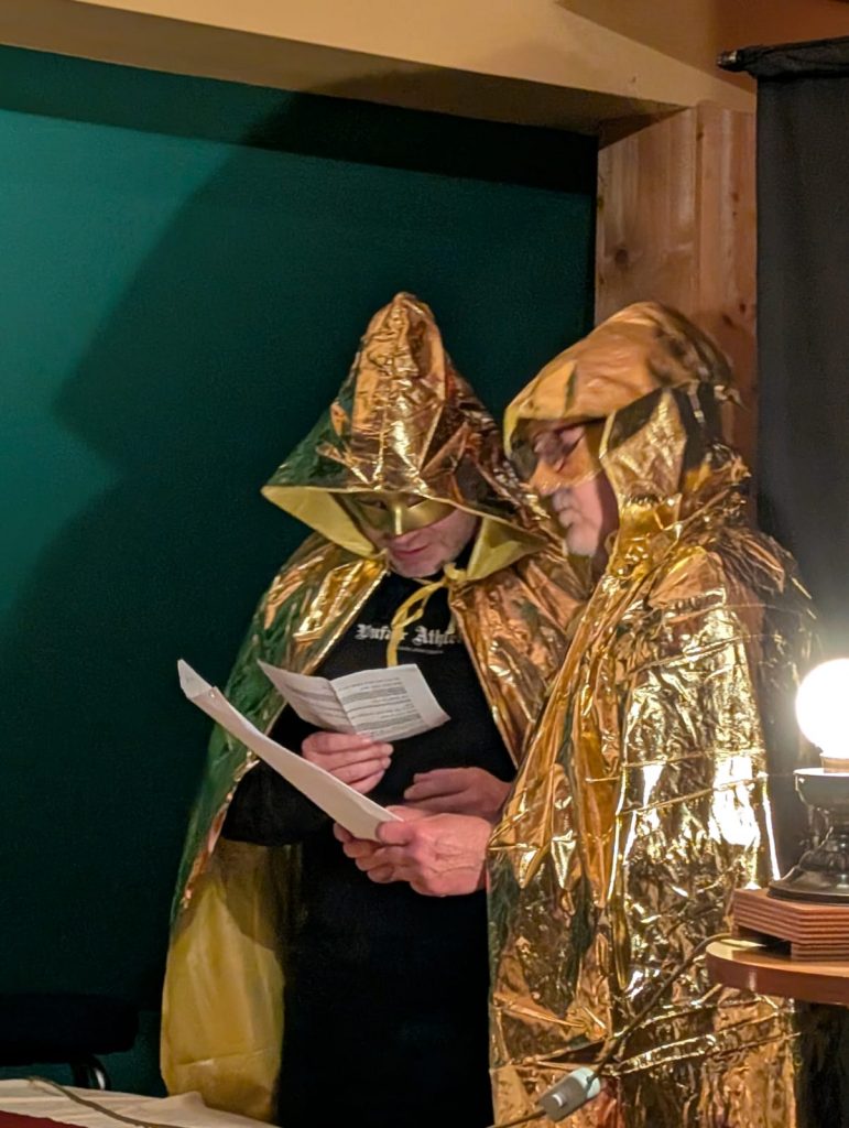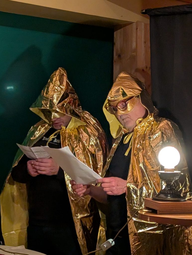 Gerold Lotz präsentierte seinen Vortrag in historischer Gewandung. An der szenischen Lesung wirkte zudem Mark Seidenberger mit, der in verschiedenen Rollen überzeugte. Die Begrüßung und Moderation übernahm BBB-Spitzenkandidat Hans-Konrad Neuroth.