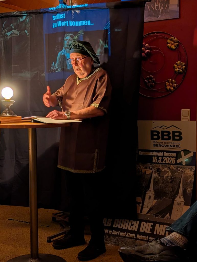 Im Rahmen ihrer Kommunalwahlkampagne hat die Bürgerbewegung Bergwinkel (BBB) zu einem besonderen Vortragsabend eingeladen. Unter dem Leitmotiv, historische Persönlichkeiten als Impulsgeber für aktuelle politische Fragestellungen zu betrachten, stand der Abend ganz im Zeichen Ulrich von Huttens – einer der prägendsten und zugleich streitbarsten Figuren der frühen Reformationszeit.